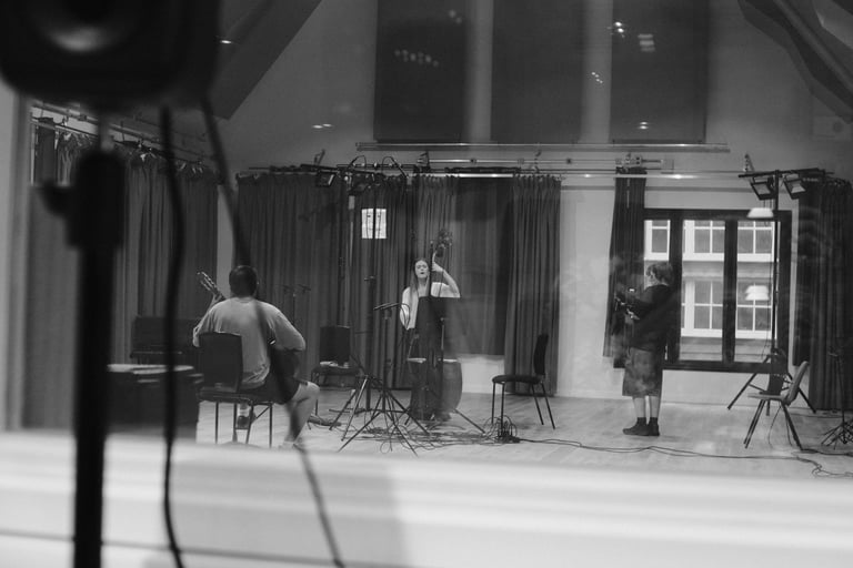 The live music video was filmed by Harry Isherwood in a beautiful old barn, with support from the City Music Foundation. The single cover was photographed by the incredible Venetia Jollands, and our animated “Canvas” video was created by artist Lynne McQuade, inspired by the handmade worlds of The Clangers and Ivor the Engine.